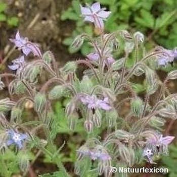 , ook Komkommerkruid genoemd, is een plant met stervormige knikkende blauwe bloemen.
