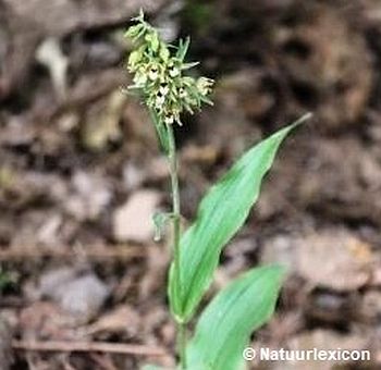 De bloemen zijn groen-geel en hebben een vleeskleurige tot roodbruine onderlip. Ze staan van juli tot september in aren of trossen aan de plant. Deze bloemen geuren niet. De bladeren zijn langwerpig. De plant bezit een wortelstok.