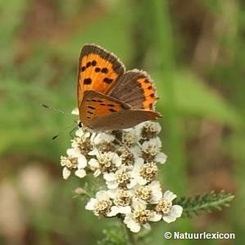 Volwassen vlinders bezoeken graag bloemen die behoren tot de composieten zoals Boerenwormkruid